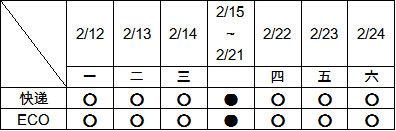 ※ クーリエ便とエコ便は2月13日までは通常通り集荷、出荷致します。